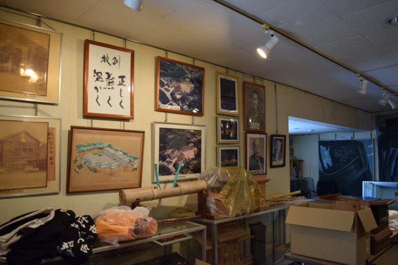 楼門内に設置された、天満宮例祭「梅林まつり」の紹介パネル。