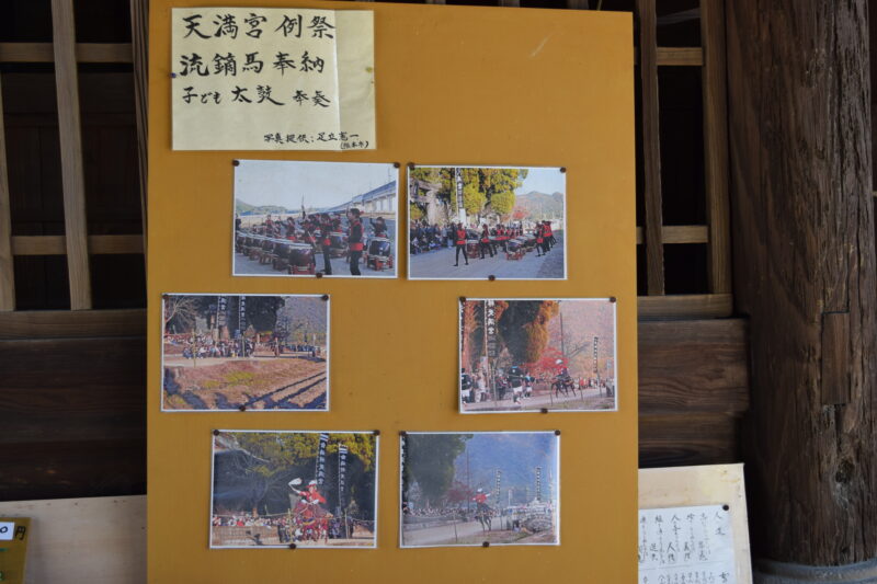 毎年11月に行われる流鏑馬神事や、地元の子ども太鼓奉納の様子が写真で紹介されています。