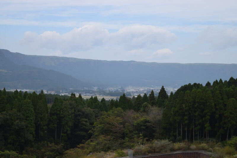 その裾野には阿蘇の町並みが広がり、深い山々と人の暮らしが寄り添う光景が印象的でした。
