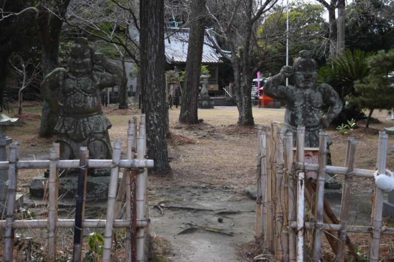 境内には石造りの仁王像が立っており、これはかつて日本の神様と仏教の仏様を共に信仰していた「神仏習合(しんぶつしゅうごう)」という時代の歴史を今に伝える貴重な遺構です。