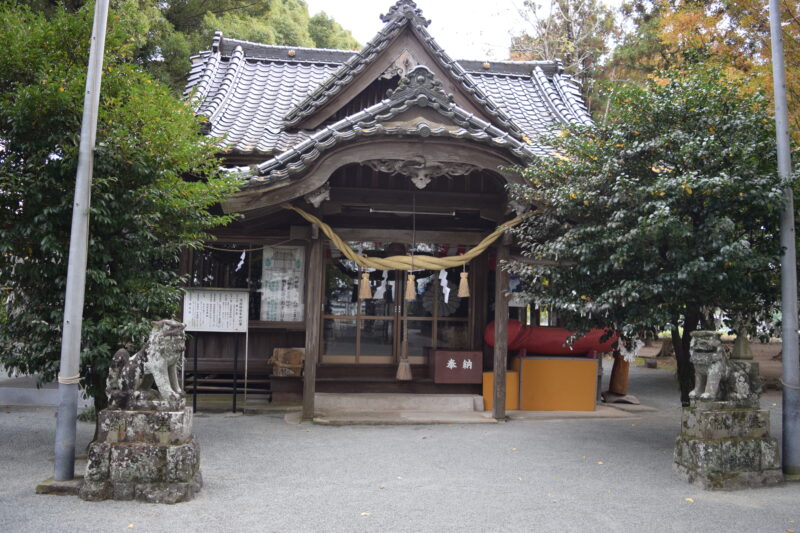 弓削神宮の本堂は、どこか懐かしさを感じる静かな佇まいで、訪れる人を穏やかな気持ちにさせてくれます。