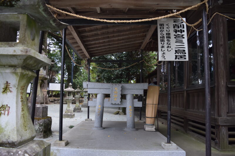 伝統的な狛犬と対照的に、赤い陽形が置かれた光景はとても印象的で、弓削神宮ならではの“神仏習合期の名残”と“民間信仰の力強さ”をよく示しています。
