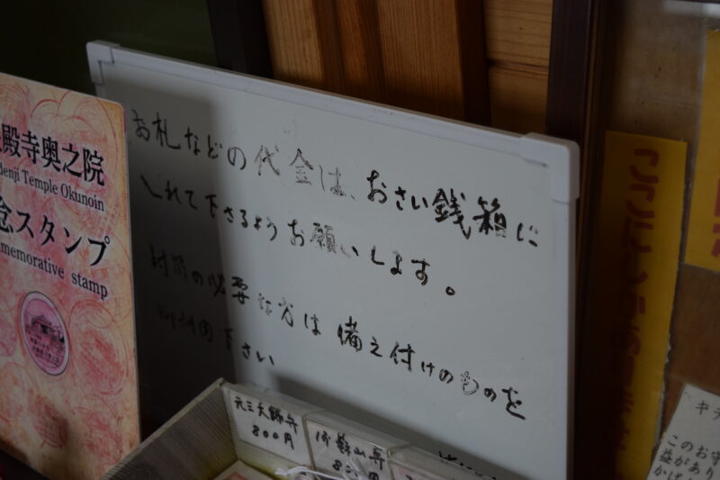 奥之院では参拝記念として書き置きを受け取る形式となっています。