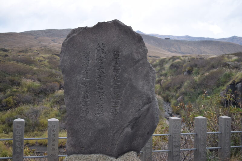 背景に阿蘇山と開けた場所にあり、観光地の喧騒とは無縁の、静かな祈りの空気が漂います。